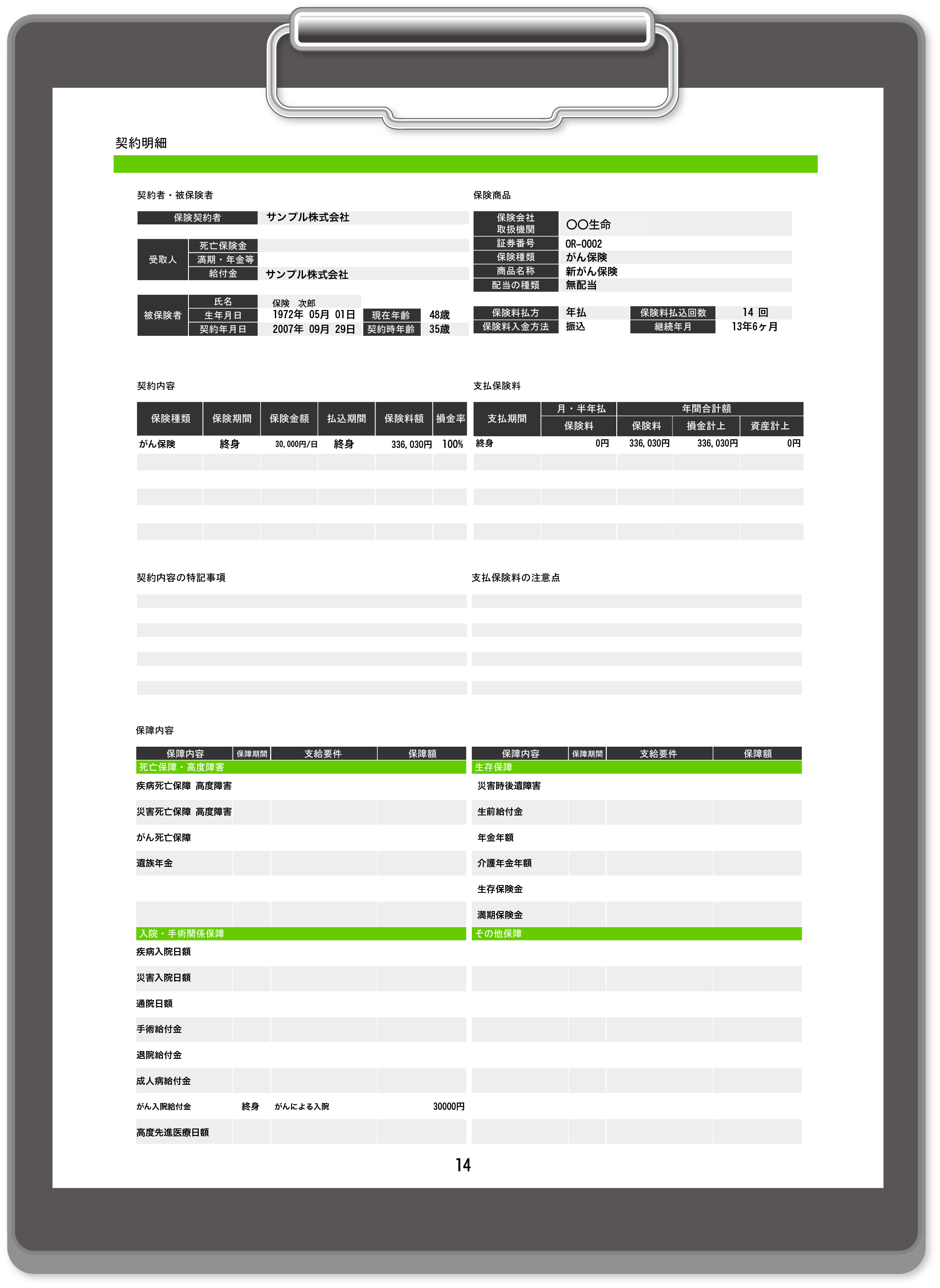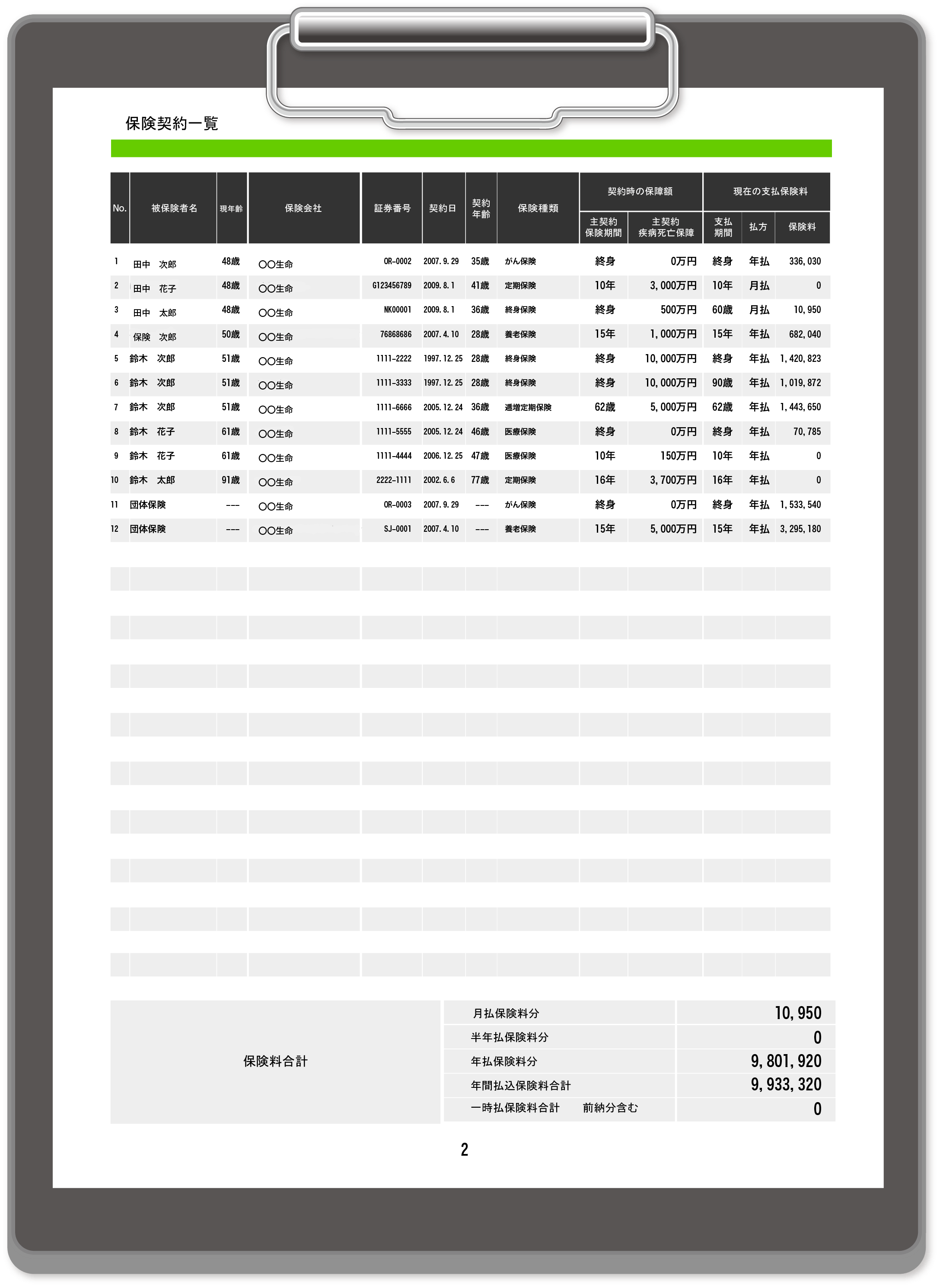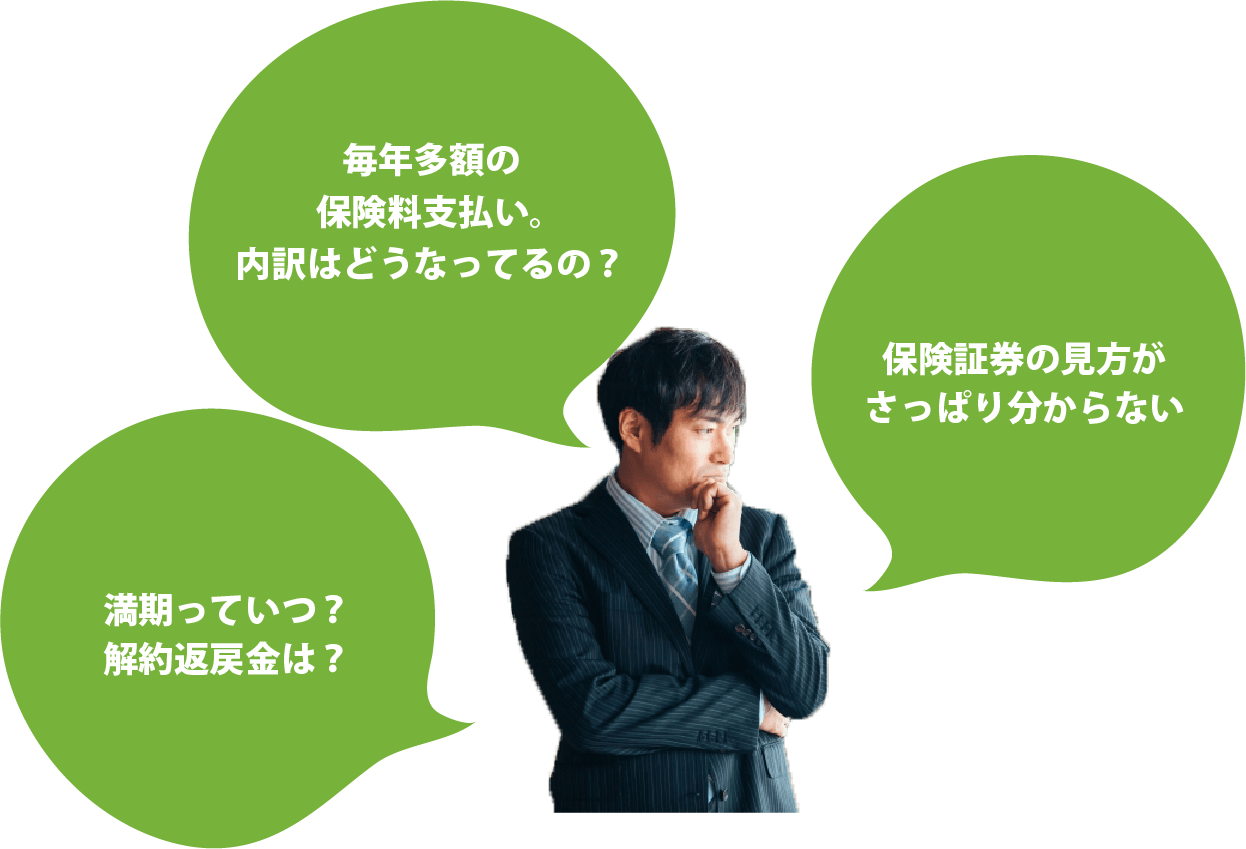 契約内容の一括確認により保障内容などの過不足を見つけ適正な状況を保つ。