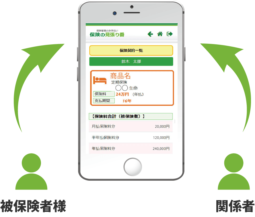 お客様の保険情報をいつでもどこでも確認できるシステムを構築し、お客様自身が保険情報を一括管理いただき安心できるサービスを提供する。
